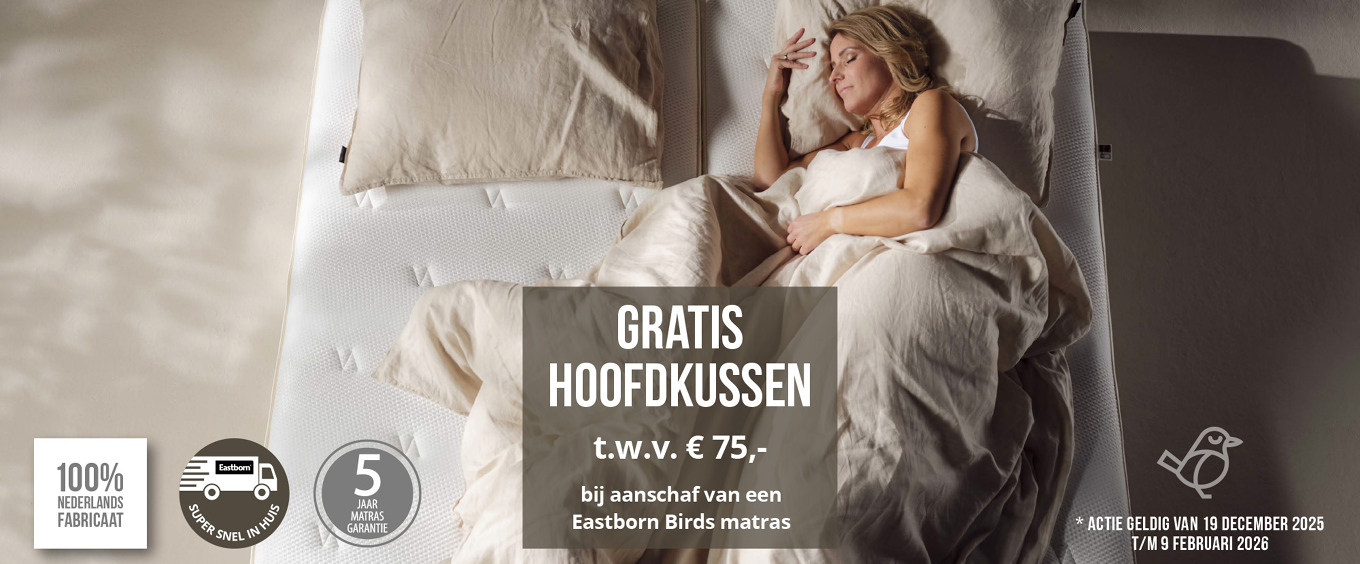 - De actie geldt op alle matrassen uit de Eastborn Birds en Eastborn Reboost collectie.