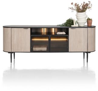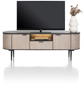 Een modern meubel, geïnspireerd op klassiek design; dat is dit lowboard Aramon met zijn ronde vormen, marmerlook en stijlvolle lattenstructuur. Voor de Aramon collectie hebben onze designers zich laten inspireren door vormen, materialen en kleuren uit het verleden. Het lowboard is 210 cm breed, staat op kegelvormige poten en heeft afgeronde zijpanelen die zachtheid aanbrengen in je interieur. Aramon heeft 2 deuren, 1 lade en 1 niche dat met led is verlicht. Zie jij ‘m al staan in je woonkamer?