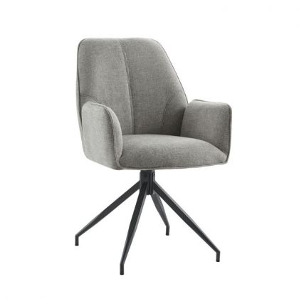 De stoel is bekleed met een luxe gemêleerde weefstof en de sierstiksels op de rugleuning accentueren het eigentijdse en elegante ontwerp. De armleuningen bieden niet alleen extra comfort, maar voegen ook een vleugje klasse toe aan het geheel.