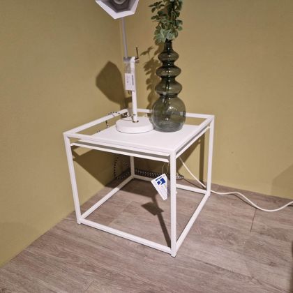 Bijzettafel Thina is uitgevoerd in gepoedercoat metaal in de kleur wit.