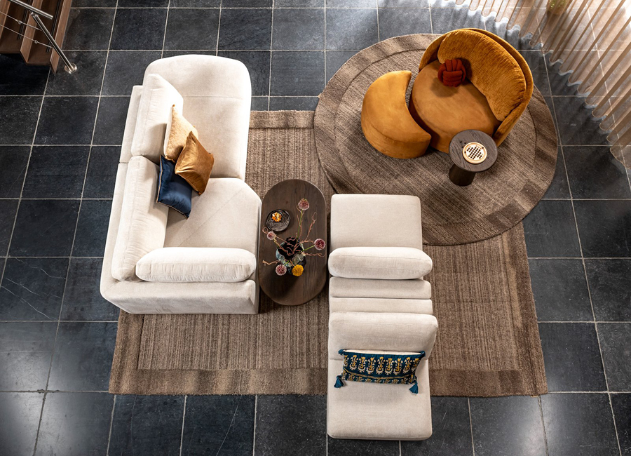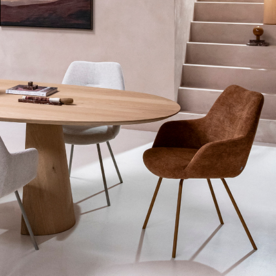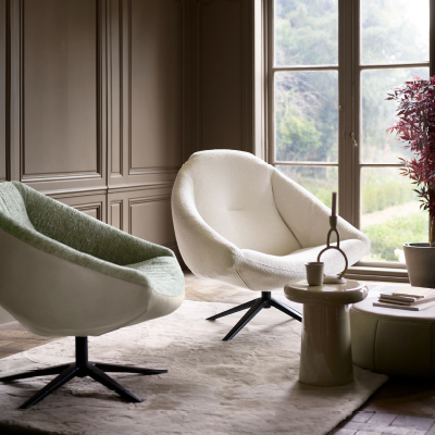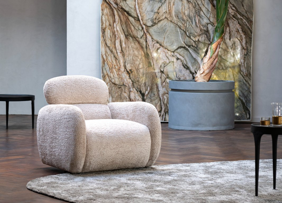 Organische ronde vormen zien we al een langere tijd, en blijven ook in 2026 een grote rol spelen. Ze worden nu vaker gecombineerd met royale, comfortabele meubels. Banken mogen groter, fauteuils zachter en tafels ronder.