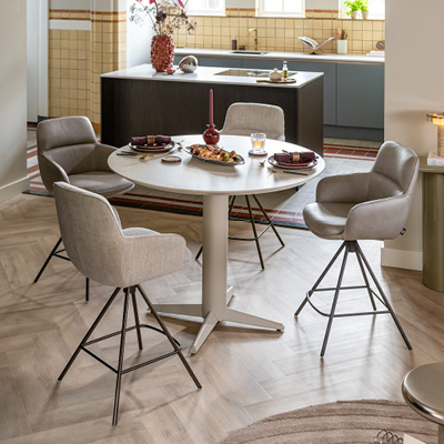 Een ronde eettafel staat bekend om gezelligheid. Omdat iedereen elkaar aan kan kijken, voelt samen eten automatisch intiemer. Ideaal voor lange avonden tafelen en goede gesprekken.