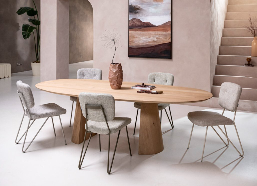 Ovale tafels zijn ideaal als je regelmatig gasten ontvangt. Ze bieden veel zitplaatsen, maar ogen minder massief dan een rechthoekige tafel. Daarnaast sluiten ze perfect aan bij de trend van organische vormen en warme interieurs.