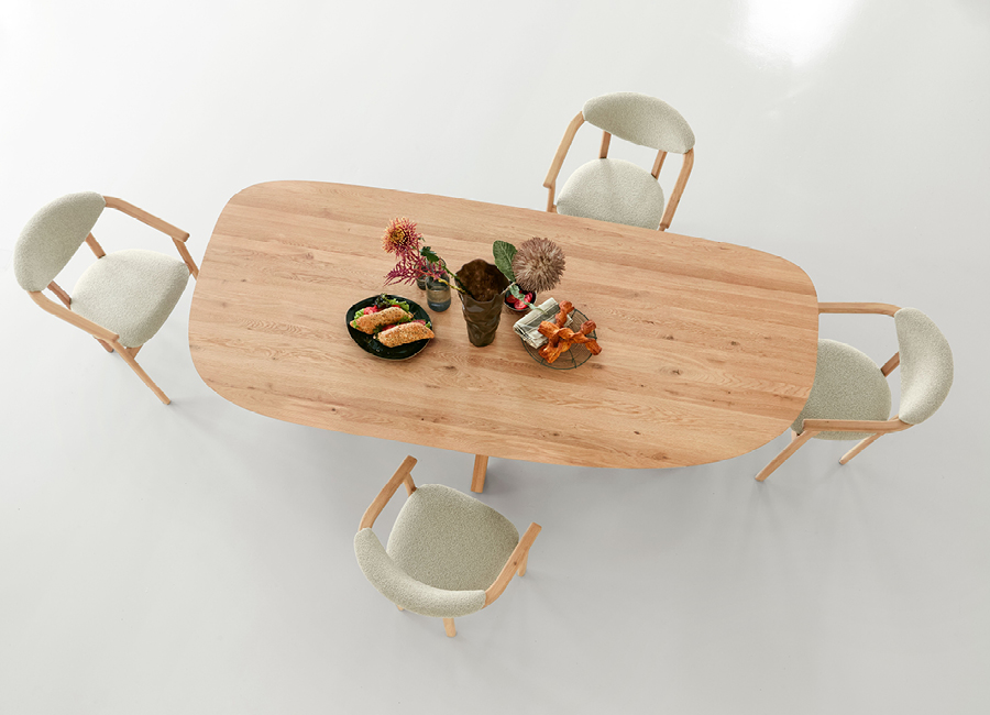 Ook sluit deze vorm zich goed aan op het dagelijks leven. Er is genoeg ruimte voor iedereen, of je nu samen eet, huiswerk maakt, werkt op je laptop of gasten ontvangt. Dankzij het grote oppervlak schuif je ook eenvoudig stoelen aan wanneer nodig.