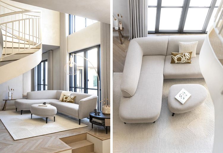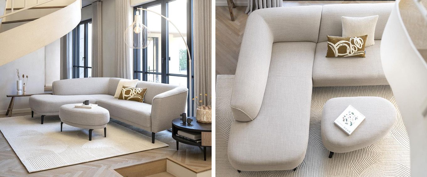 In kleine ruimtes draait het ook om de juiste vormen. Waar hoeken en strakke lijnen soms hard kunnen overkomen, zorgen ronde vormen voor zachtheid en een vloeiend geheel. Daarnaast maken ronde spiegels, vazen, poefs en lampen een kamer visueel interessanter. Ze breken de rechte lijnen van muren en meubels, en creëren een dynamische look zonder chaos. Denk aan een mix van texturen en materialen voor extra warmte — een plaid over de stoel, een rotan mand naast de bank, of een glazen tafellamp met een warme gloed.