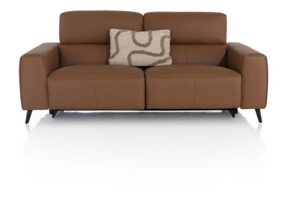 3-zitsbank Caluso is elektrisch verstelbaar en inclusief bonellvering. Deze bank is uitgevoerd in leder in de kleur bruin.