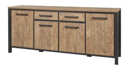 Dit dressoir Mendiga is een stoer industrieel meubel met een metalen frame en een kras- slijt- en stootvaste melamine afwerking. Dankzij het slanke zwart metalen frame heeft dressoir Mendiga een stoere maar toch strakke look.