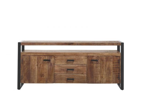Dit meubelstuk is volledig handmatig vervaardigd uit massief mangohout. Meubelen uit mangohout zijn zeer duurzaam en milieuvriendelijk, omdat het hout een bijproduct is dat verwerkt wordt als de boom geen vruchten meer draagt. Geen enkele meubel is gelijkwaardig van vorm, structuur of kleur. De zichtbare geslepen lasnaden en ruwe afwerking geven je meubel een specifieke industriële look. Newhaven is een kwestie van combineren en creëren!