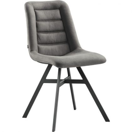 De Naco eetkamerstoel is de perfecte stoel om heerlijk aan te tafelen. De stoel is bekleed met stof Chicago in de kleur donkergrijs met zwarte metalen poten. De stof heeft een zichtbare leernerf en voelt zacht aan. De rug is voorzien van verticale sierstiksel.