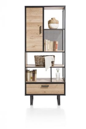 Boekenkast Avalon bevat 1 deur, 1 lade en 5 niches. De boekenkast is te zien in de kleur naturel. Boekenkast Avalon is onderdeel van een woonprogramma.
