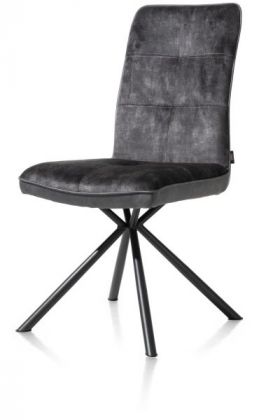 Eetkamerstoel Milva is te zien in de kleur antraciet. De eetkamerstoel is gemaakt van een combi stof Pala/Karese.