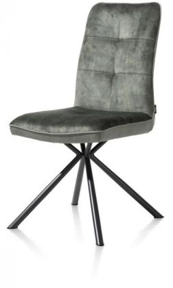 Eetkamerstoel Milva is te zien in de kleur groen. De eetkamerstoel is gemaakt van een combi stof Pala/Karese.