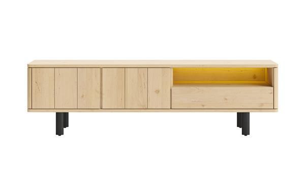 Lowboard Homestead is uitgevoerd in eikenfineer en heeft 2 deuren + 1 lade + 1 niche (+LED).