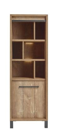 De hoge smalle kast Alva is voorzien van 1 deur en 6 open vakken waardoor deze perfect is om spullen in op te bergen én om je mooiste accessoires een leuk plekje te geven! De mat zwart metalen handgreep en poten vormen een mooi contrast met de warme houtkleur.