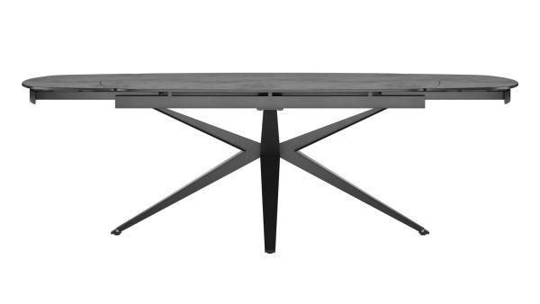Uitschuiftafel Lazio - 170 + (2 x 40 cm) heeft een bovenblad van keramiek op glas in de kleur antraciet en heeft metalen poten.
