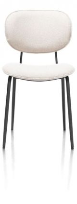 Eetstoel Lexi is bekleed met stof in de kleur wit en heeft een zwart metalen frame.