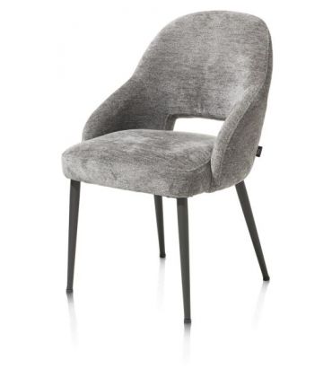 Deze stoel Nikolas uit de Henders & Hazel collectie heeft een speels, open design dat over heel de stoel doorloopt. De stoel is bekleed met stof Enzo, een chenillestof met verschillende kleurtinten die mooi door elkaar geweven zijn. Deze versie is uitgevoerd in kleur grijs, maar er zijn ook nog 3 andere zachte kleurtinten verkrijgbaar! Deze versie van de stoel is uitgevoerd met 4 vaste poten in de kleur grafiet, maar er is ook een draaibare versie beschikbaar met automatische terugdraaifunctie.