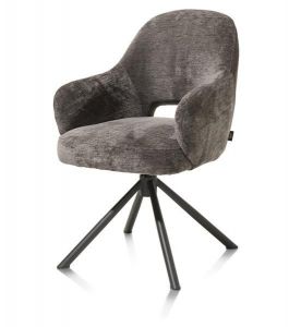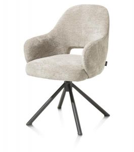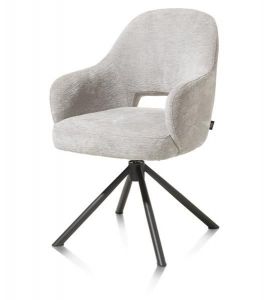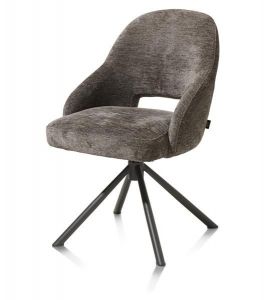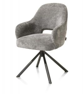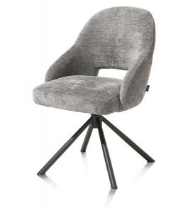 Deze stoel Nikolas uit de Henders & Hazel collectie heeft een speels, open design dat over heel de stoel doorloopt. De stoel is bekleed met stof Enzo, een chenillestof met verschillende kleurtinten die mooi door elkaar geweven zijn. Deze versie is uitgevoerd in kleur kiezel, maar er zijn ook nog 3 andere zachte kleurtinten verkrijgbaar! Deze versie van de stoel is uitgevoerd met 4 vaste poten in de kleur grafiet, maar er is ook een draaibare versie beschikbaar met automatische terugdraaifunctie.