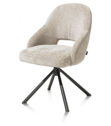 Deze stoel Nikolas uit de Henders & Hazel collectie heeft een speels, open design dat over heel de stoel doorloopt. De stoel is bekleed met stof Enzo, een chenillestof met verschillende kleurtinten die mooi door elkaar geweven zijn. Deze versie is uitgevoerd in kleur Champagne, maar er zijn ook nog 3 andere zachte kleurtinten verkrijgbaar! Deze versie van de stoel is uitgevoerd als draaibare versie met automatische terugdraaifunctie, maar er is ook een versie met 4 vaste poten in de kleur grafiet.