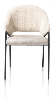 Armstoel Nolan is bekleed met 2 verschillende stofsoorten Wave / Taurus in de kleur creme en heeft een zwart frame.