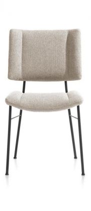 Eetstoel Tatum is bekleed met stof Ponti in de kleur crème en heeft zwart metalen poten.