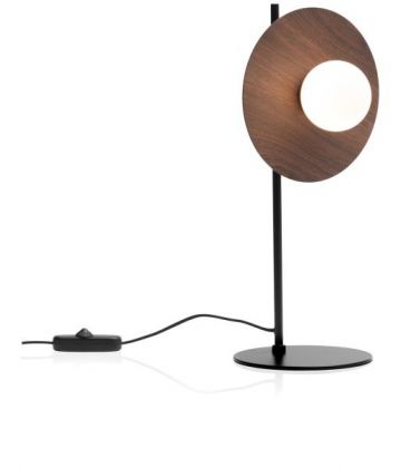 Tafellamp Ufo is gemaakt van metaal in de kleuren zwart en bruin en heeft een glazen lichtbol.