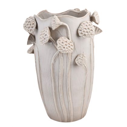 Vaas Lotus is gemaakt van steen in de kleur wit.