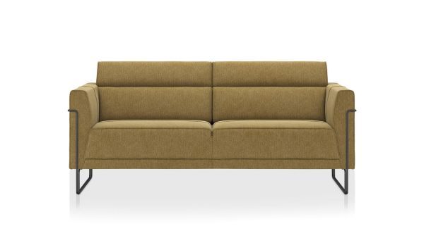 Fiskardo is een stoere 2.5-zitsbank. Dit komt mede door het zwarte metalen onderstel en strakke siernaden. Het onderstel is slank en tegelijk bijzonder, omdat het omhoog doorloopt rondom de zijkanten van de bank.